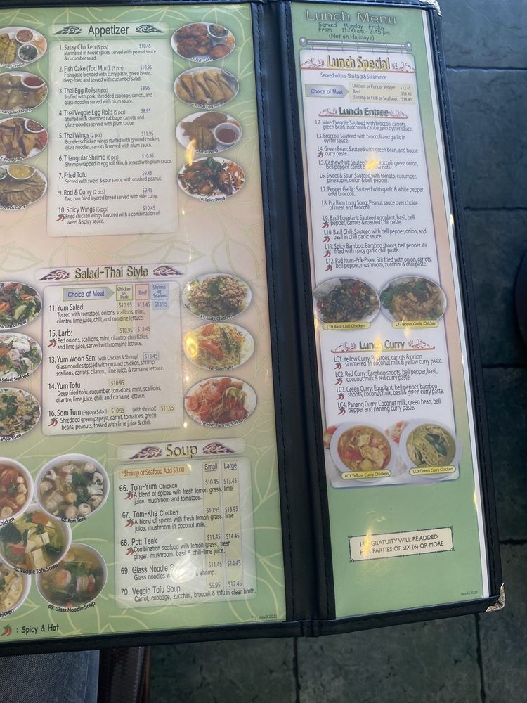 - Appetizers: Start your culinary journey with favorites like the Satay Chicken, marinated to perfection and served with homemade peanut sauce, or indulge in the crispy Thai Veggie Egg Rolls.